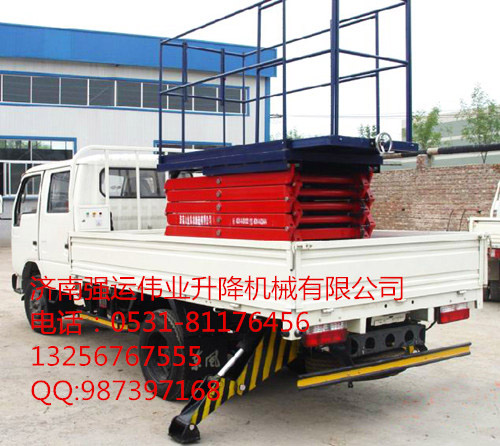 產(chǎn)品規(guī)格:本類產(chǎn)品根據(jù)升降高度可分為4、6、8、10米升降平臺(tái),設(shè)備載重300公斤至500公斤,客戶可根據(jù)需求選用解放、東風(fēng)、輕騎、福田、電瓶車等任何車型,設(shè)備直接采用汽車或電瓶的直接動(dòng)力升降。 地址:山東省濟(jì)南市濟(jì)北開發(fā)區(qū) 銷售熱線:0531-81176456 手機(jī):13256767555 QQ:987397168 升降平臺(tái) | 鋁合金降機(jī) | 登車橋